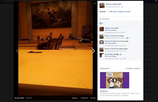 Mai mult, acesta și-a dat de gol mama, dezvăluind că l-a luat cu ea într-o delegație oficială în Spania. Foarte mândru, Darius Costin le-a arătat și prietenilor virtuali fotografii din sala de ședinte cu “boasa” (femininul de la boss)