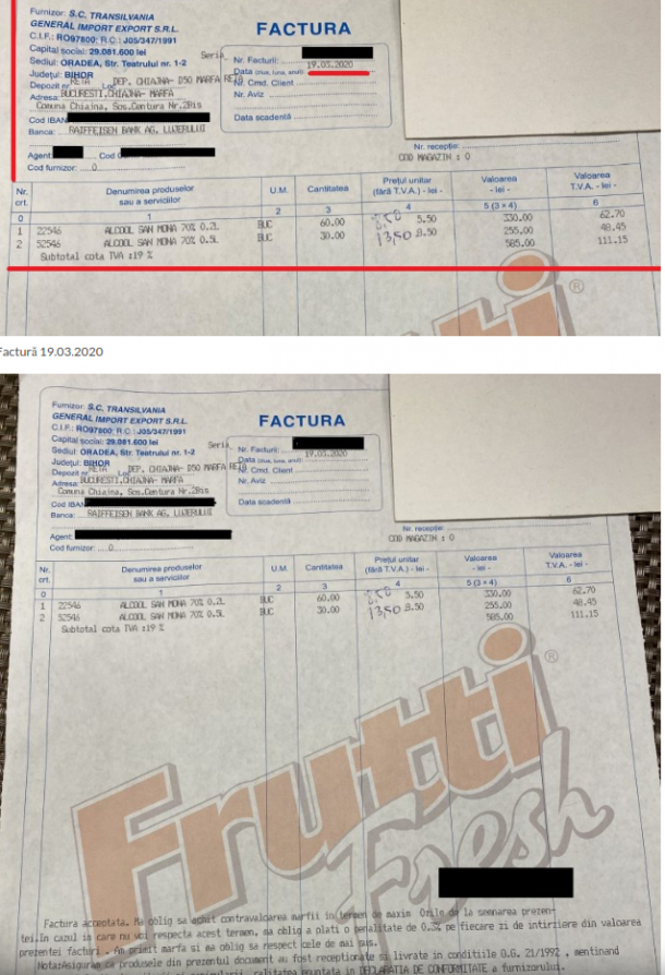 Nu în ultimul rând trebuie menţionat că, în acest moment, pe piaţa din România s-au observat creşteri semnificative ale preţurilor la raft către utilizatorul final, la foarte multe produse alimentare – legume, fructe, pâine, produse de panificaţie, făină etc. – dar Pagina 5 din 6 şi la produse necesare în gospodărie, sau de protecţie – dezinfectanţi externi, măşti, mănuşi de unică folosinţă etc. De asemenea, preţul altor biocide disponibile în piaţă este şi de 10 ori mai mare, în funcţie de conţinutul de alcool 100% pe unitate de măsură (litru).