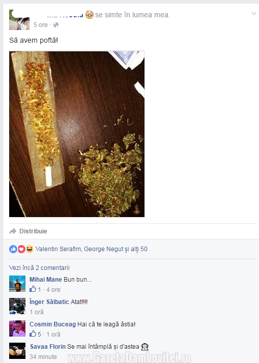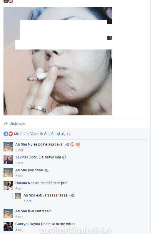 Dâmbovița: O elevă în vârstă de 17 ani a postat pe Facebook imagini cu ea drogându-se (FOTO)