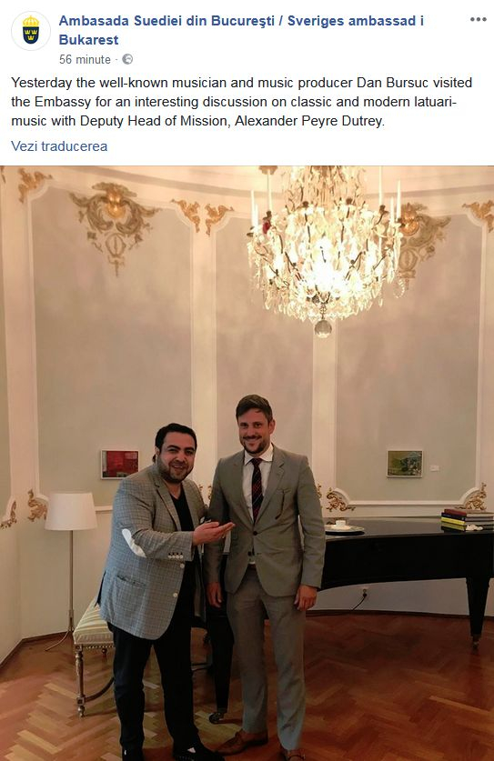 Manelistul Dan Bursuc a fost primit la Ambasada Suediei de la București ca un mare muzician.
