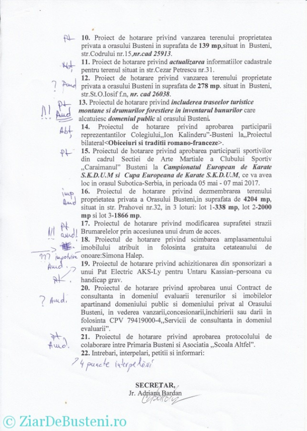 Revenind la subiect, ca de obicei anunț ședința ordinară a C.L. Bușteni, cu ordinea de zi și cum voi vota in Ședință. Precizez că acolo unde vedeți ” Amd” se poate ca votul să se schimbe deoarece amendamentele sunt de natură legală/juridică sau materialele nu sunt complete, cel puțin in acest moment, iar pt = pentru , imp = impotrivă și abț=abținere.