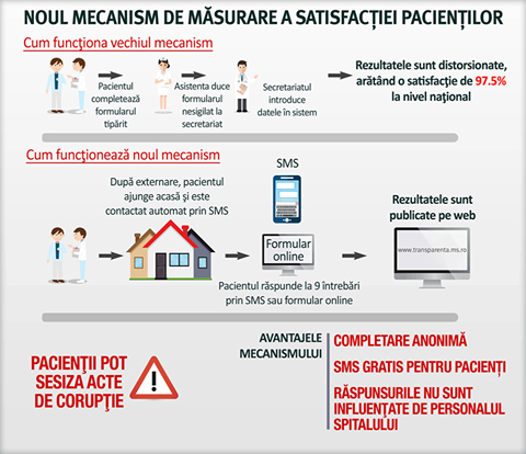 ”În acest moment, măsurarea satisfacției pacienților se bazează pe formulare tipărite care sunt completate de pacienţi în timpul internării, iar apoi introduse într-un sistem centralizat de către angajaţii spitalului. Această metodologie distorsionează rezultatele şi nu oferă o situaţie reală a experienţei pacientului în spital”, a mai precizatMinisterul Sănătății.