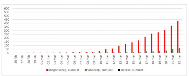 De la ultima informare transmisă de Grupul de Comunicare Strategică, transmisă ieri, 21 martie, ora 13.00, au fost înregistrate alte 66 de noi cazuri de îmbolnăvire.