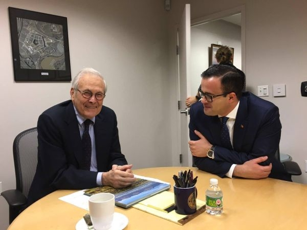Mihai Gâdea s-a pozat cu Donald Rumsfeld, în timp ce Alina Gorghiu părăsea camera. În aceeaşi vizită a fost şi Dan Mihalache