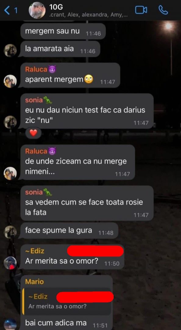 Cu puțin timp înainte ca profesoara să fie înjunghiată în gât, mai mulți elevi au discutat pe un grup de WhatsApp dacă să chiulească sau nu, moment în care elevul care a atacat-o a scris: „Ar merita să o omor?”