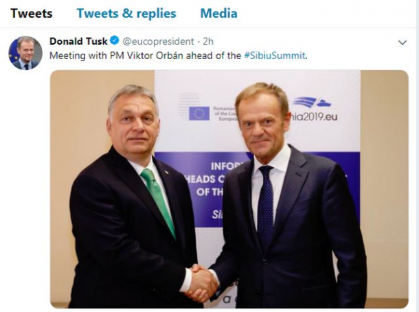 Tusk a postat o fotografie pe contul său de Twitter, de la întâlnirea sa cu prim-ministrul Ungariei.