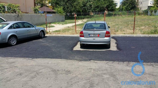 O fotografie distribuită rapid printre internauți a stârnit amuzamentul celor care au vazut-o. Câțiva muncitori din Craiova au fost puși să toarne un strat de asfalt de-a lungul unei parcări și pentru că o mașină era parcată acolo au acolit-o pur și simplu și au turnat stratul de bitum în jurul ei.