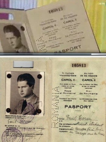 Paşaportul lui Emil Cioran: Prezentat de Laurence Tacou (sus), la licitaţie (jos)![]()