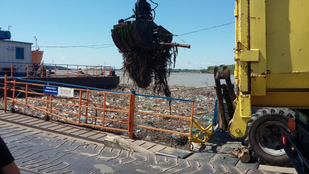 „Sunt aici peste 40 de tone de gunoaie. Ce să facem, cred că terminăm în două, trei zile, dar dacă muncim non stop”, a declarat unul dintre manipulatorii utilajului care scotea gunoaie din apă.