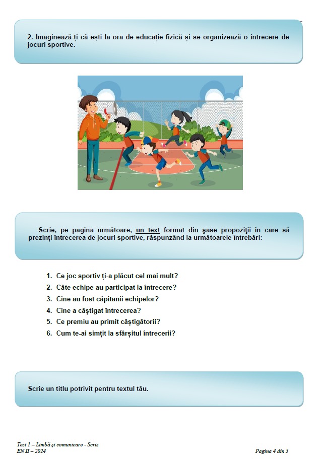Marți, elevii claselor a II-a au fost evaluați la proba de Limbă și Comunicare – citit – Limba Română, în timp ce elevii care aparțin minorităților naționale au participat miercuri la proba de Limbă și Comunicare – citit – Limba Maternă.