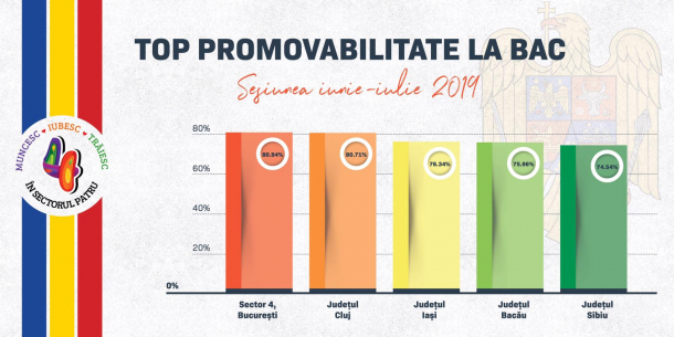 Investițiile în infrastructura școlară, derulate de Primăria Sectorului 4 în ultimii 3 ani, dar și politicile publice în materia creșterii gradului de competitivitate al elevilor, dau rezultate îmbucurătoare! Potrivit informațiilor oficiale ale Ministerului Educației, elevii școlilor pe care autoritatea locală le administrează au reușit să se clasese pe locul I la nivel național în privința procentului de promovabilitate la examenul maturității, Bacalaureatul.