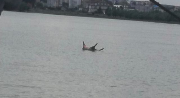 Imagini șocante au fost surprinse vineri în plină epidemie de pestă porcină! Cadavrul unui porc a fost pozat în timp ce era purtat de curenți, chiar în dreptul falezei municipiului Tulcea.