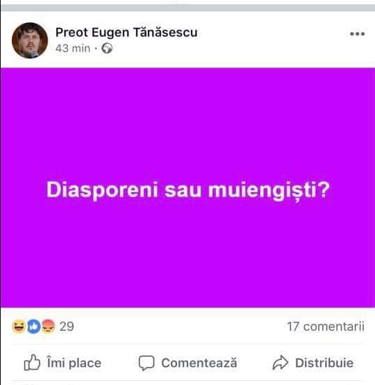 Purtătorul de cuvânt al Arhiepiscopiei Tomisului, Eugen Tănăsescu, a postat un mesaj pe Facebook în care i-a jignit pe românii care au participat la protestul din 10 august.
