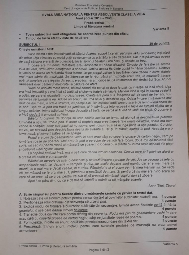 Evaluare Națională 2020. Subiectele care au picat la Limba și literatura română