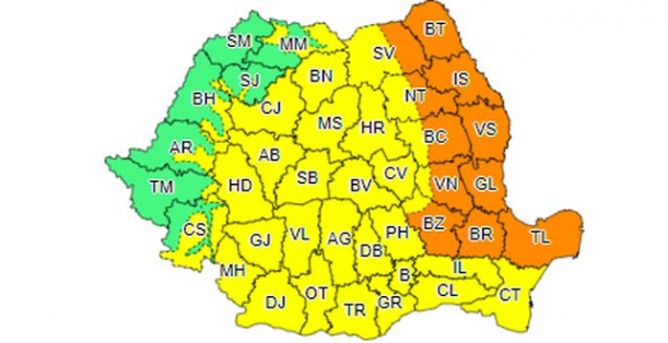Administrația Națională de Meteorologie a emis două coduri galbene și unul portocaliu privind fenomene de instabilitate atmosterică