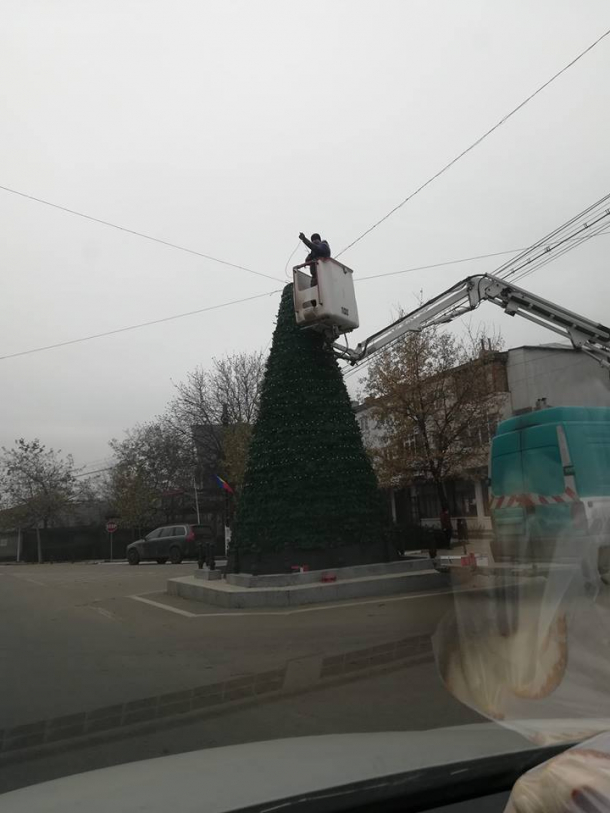 Situație de-a dreptul halucinantă într-o localitate din Galați. Monumentul Eroilor din comuna Cudalbi a fost acoperit, în acest an, cu bradul de Crăciun.