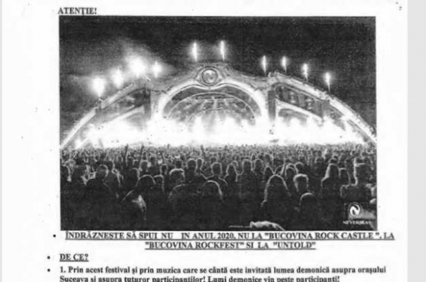 „Cerem în Numele Lui Dumnezeu, a bunului simt, a Moralității Publice, a valorilor creștine-biblice și tradiționale românești, ca în anul 2020 să nu se mai dea nici un cent de la ambele bugete, menționate mai sus, bani publici, pentru „Bucovina Rock Castle” și pentru Concertul ”Bucovina Rockfest” ambele desfășurate până acum Ia Cetatea de Scaun Suceava în luna August la interval de două săptămâni. Inadmisibil !!! Veți răspunde înaintea judecătorului Suprem-Dumnezeu pentru procesul de demonizare treptată a Municipiului și Județului Suceava. V-am dat pe mâna Lui Dumnezeu prin rugăciune și post”, se arată în contestația față de bugetul județului Suceava.