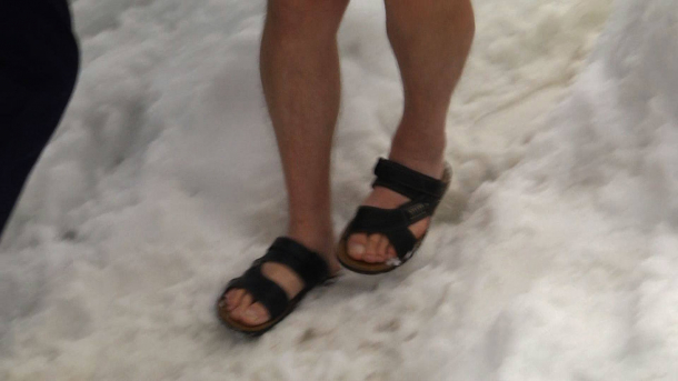 Fotografiile postate pe contul de Facebook Meteoplus arată că oamenii erau în tricouri, pantaloni scurți și sandale.