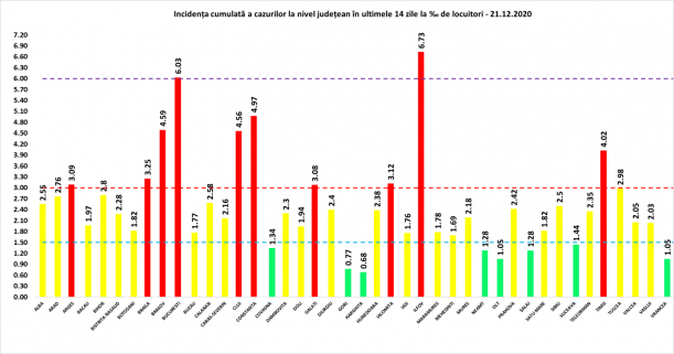 Capitala este urmată de Ilfov, Argeșși Constanța, potrivit raportării transmise pe 21 decembrie, de Grupul de Comunicare Strategică.