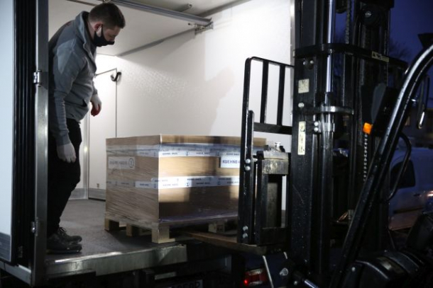 „Prima tranşă, de 14.000 doze de vaccinModerna, vor ajunge mâine (miercuri – n.r.) la Institutul Naţional de Cercetare–Dezvoltare Medico–Militară ”Cantacuzino”. Transportul este asigurat de firma producătoare, iar dozele de vaccin vor fi aduse la Bucureşti pe cale terestră.