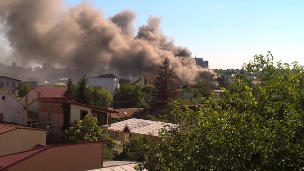 Incendiu puternic în Capitala. O casă din Sectorul 4 a fost cuprinsă de flăcări. Au ars peste 500 de metri patraţi din acoperiş şi etajul întâi. Peste 10 autospeciale au intervenit pentru stingerea flăcărilor.