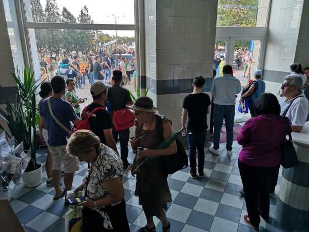 Pe Facebook, Dan Mihai Bălănescu a postat o imagine cu mai mulți oameni care s-au retras într-o clădire din cauza atmosferei din piață.