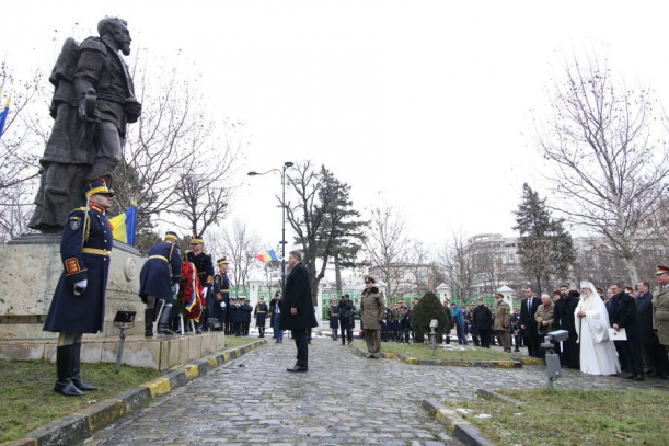 Ceremonia a început după ora 10, când şeful statului a depus o coroană de flori la statuia domnitorului Alexandru Ioan Cuza.