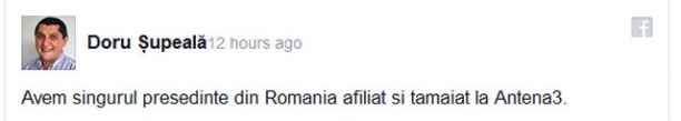 "Singurul președinte din România afiliat și tămâiat la Antena 3", a declarat un internaut.