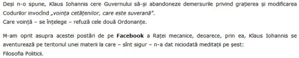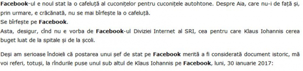 Plecând de la această idee, jurnalistul vorbește despre președintele Iohannis care a transmis de mai multe ori anumite informații importante prin intemediul paginii sale de Facebook. Acesta se întreabă câtă importanță îi poate oferi unui astfel de document scris pe rețelele de socializare.