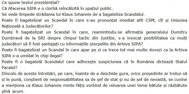 Jurnalistul Ion Cristoiu scrie în “Gândul de luni”, de pe blogul personal, despre modul în care Klaus Iohannis s-a exprimat în scandalul SIPA.