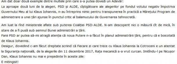 Cristoiu aduce în discuție acțiunile Guvernului la aproximativ două luni de la alegrerile parlamentare.