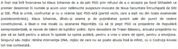 Ion Cristoiu vorbește în “Gândul de marți”, de pe blogul personal, despre situația politicii românești, dând exemplu în acest sens, în primul rând, refuzul președintelui Klaus Iohannis de a o accepta pe Sevil Shhaideh în funcția de premier.