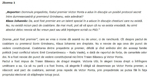 Acesta a decis, că plecând de la declarațiile președintelui, a decis să facă un top al acestor afirmații pe care le va denumi Zicerile lui Klaus Iohannis.