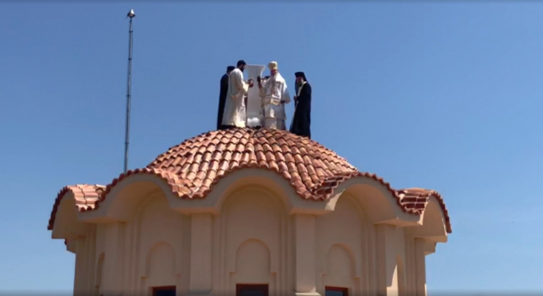 Obiceiul este ca episcopul să sfinţească jos crucile, apoi constructorul le urcă şi le montează, numai că Teodosie preferă să urce la crucile deja montate pe turlă.