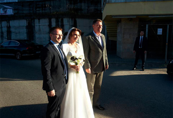 Motiv de bucurie pentru o pereche de miri aflați în zonă care s-a fotografiat cu șeful statului.