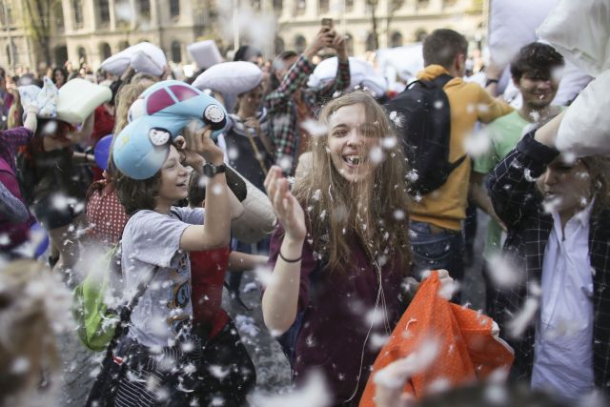 Le-au zburat fulgii, la propriu: Sute de bucureșteni s-au distrat pe cinste de Ziua Internaţională a bătăii cu perne