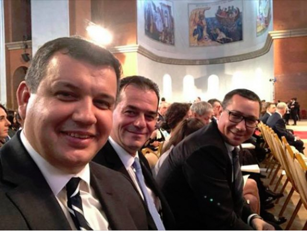 Europarlamentarul PMP a imortalizat momentul și a postat pe facebook o fotografie în care apare alături de președintele PNL, Ludovic Orban, și președintele Pro România, Victor Ponta.
