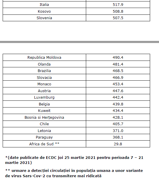 Comitetului Național pentru Situații de Urgență a actualizat lista statelor cu risc epidemiologic ridicat, pentru care se impune măsura carantinei în cazul persoanelor care revin în România din aceste destinații.