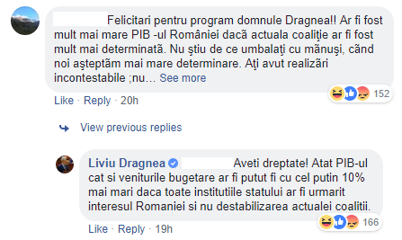 Produsul Intern Brut (PIB) şi veniturile bugetare ar fi fost cu cel puţin 10% mai mari dacă toate instituţiile statului ar fi urmărit interesul României, şi nu destabilizarea actualei coaliţii, a precizatLiviu Dragnea, într-o postarede pe pagina sa de Facebook, de luni.