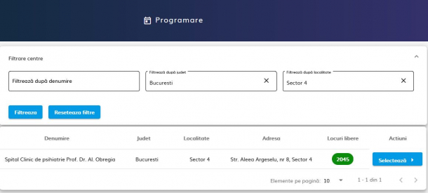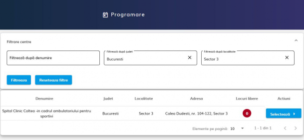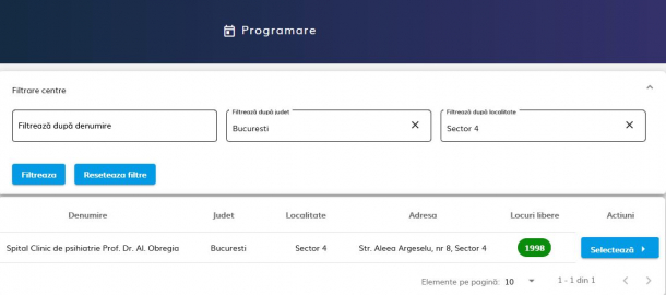 UPDATE, 15 ianuarie, ora 21.10 – S-au epuziat locurile disponibile în luna ianuarie pentru programare la vaccinare în București.