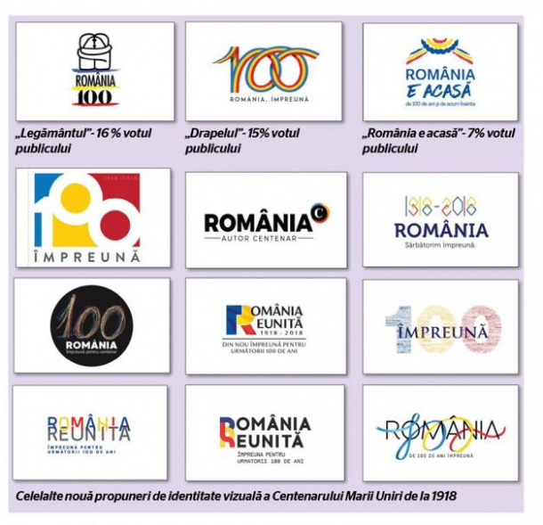Ministerul Culturii a anunțat, luni, logo-ul ales pentru a reprezenta identitatea vizuală cu ocazia Centenarului Marii Unirii. Aceasta a fost aspru criticată întâi pentru faptul că tricolorul afișat pe cifra 1 are culorile inversate decât sunt afișate pe drapel, iar acum mai mulți specialiști în artă, dar și publicitari, și-au arătat nemulțumirea față de această alegere numind-o "o idioțenie" și "absolut banală".