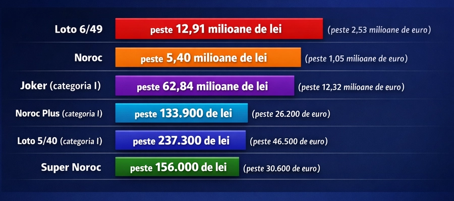 De asemenea, la Joker, la categoria I, se înregistrează un report în valoare de peste 62,84 milioane de lei (peste 12,32 milioane de euro).