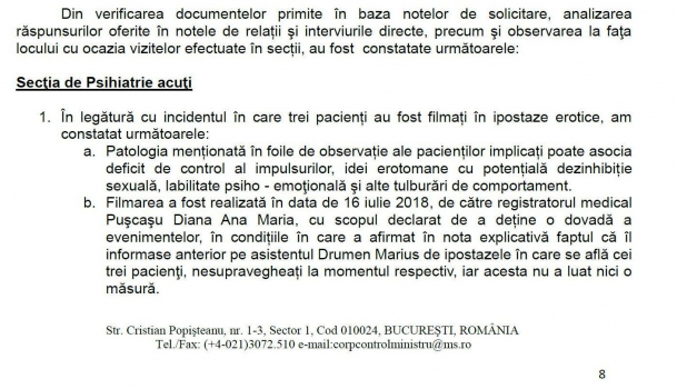 ”De un an, presa din Gorj a produs zeci de investigații despre ceea ce se întâmplă în acest spital, fără niciun fel de finalitate. De exemplu, angajații de la Psihiatrie se plictisesc foarte tare și amenajează acolo show-uri erotice cu pacienți. (…) A trecut o lună de când acest lucru a apărut în presa centrală și nu s-a luat nicio măsură. Avem un tânăr chirurg care a ținut neapărat să-și facă cheful de ziua lui de naștere în blocul operator, cu chelneri aduși de la un restaurant din oraș. Nu s-a luat nicio măsură. Avem mărturiile unor colegi din secție. Nu are sens să mai vorbim de infecții când ei fac chef în blocul operator”, a declarat Narcis Daju.