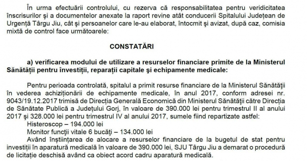 Neregulile constante în urma controlului la Spitalul din Târgu Jiu
