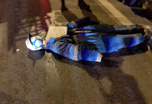 Manechinul era îmbrăcat într-o salopetă, iar în loc de cap era pusă o minge, totul pentru a da impresia unui bărbat spânzurat, scrie spynews.ro.