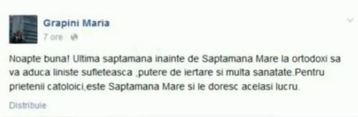 ”Noapte bună! Ultima săptămână înainte de Săptămâna Mare la ortodoxi să vă aducă liniște sufletească, putere de iertare și multă sănătate. Pentru prietenii catoloici, este Săptămâna Mare și le doresc același lucru”, a scris politicianul PC.