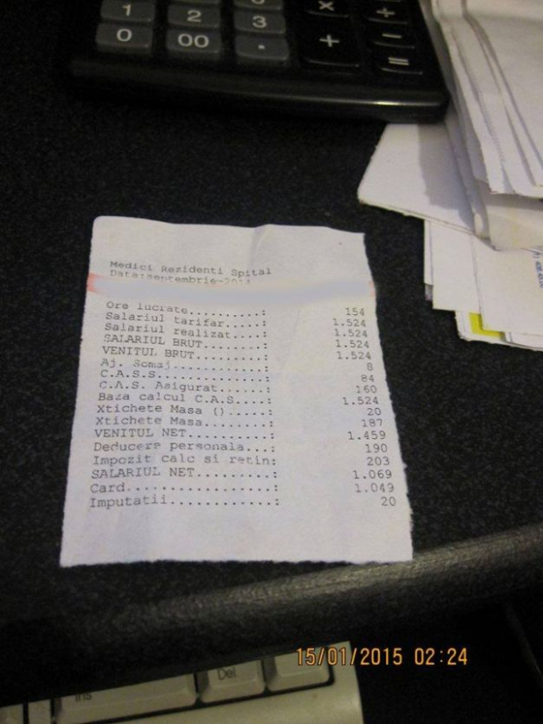 Unii dintre colegii mei iau şpaga că să poată luă un taxi spre casă când, la oră 8 pm, îşi termină muncă la spital. Este condamnabil, ştiu. Ţine chiar de codul penal, nu? Că să aibă cu ce cumpără rechizite şcolare copiilor. Am o colegă însărcinată care refuză să intre în concediu prenatal deşi e peste puterile ei să muncească doar pentru că salariul, deja infim, ar deveni jignitor de insuficient.