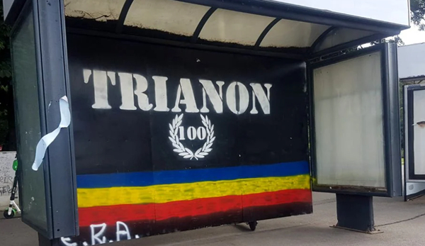 Mesajul „Trianon 100”, pictat în doliu într-o staţie de autobuz din București. Ce semnifică graffiti-ul