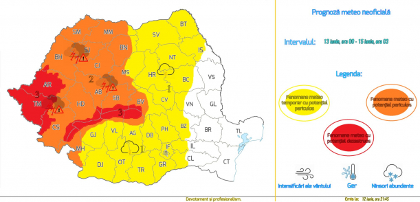 Zonele lovite vor fi judeţele Sălaj, Satu-Mare și Maramureş, iar fenomenele meteo au o traiectorie spre sud-estul ţării.