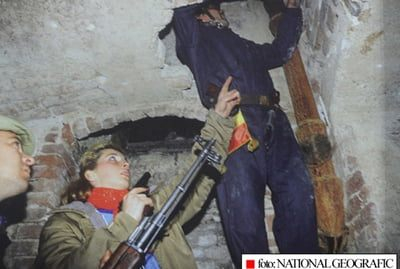 Conform RTV, Dan Voinea spune că vedeta TV ar fi fost fotografiată de un jurnalist francez în timp ce se plimba cu două arme în mână, în zilele Revoluției, în căutarea de terorişti.